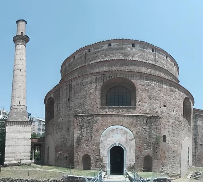 A 3-4.sz. környékén épült, valószínűleg Galériusz császár mauzóleumaként, de sosem használták erre. Nagy Theodosious korában keresztény templommá alakították át, akkor egy szentélyt is hozzáépítettek a keleti oldalán. A belső falakat színes márványlapokkal, festményekkel és mozaikokkal díszítették. A 450 körül keletkezett, arany hátterű mozaikok a nyolc fülkében geometrikus és állatmotívumokat ábrázolnak. Kupolájában Jézus az angyalokkal látható. Szentélyében 10. sz-i freskómaradványok. A török időkben mecsetként szolgált, akkor minaret is épült mellé. 1912-től ismét ortodox templom. A kerek épület kupolájának átmérője 24,5m, a falak változó vastagsága a 6,3 m.-t is eléri. 1978-ban egy földrengés során komoly károkat szenvedett.